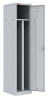 Шкаф разборный металлический односекционный с двумя отделениями, для хранения сменной одежды. Шкаф снабжен дверью с врезным замком, полкой под головной убор, в отделении перекладина для вешалки и крючки для одежды. Полимерное порошковое покрытие светло-серого цвета (RAL 7035).