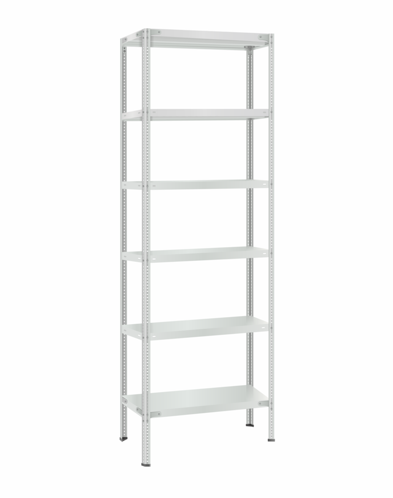 Полки МС Титан изготовлены из высокопрочной стали, покрыта полимерным порошковым покрытием светло серого цвета RAL 7035 типа шагрень