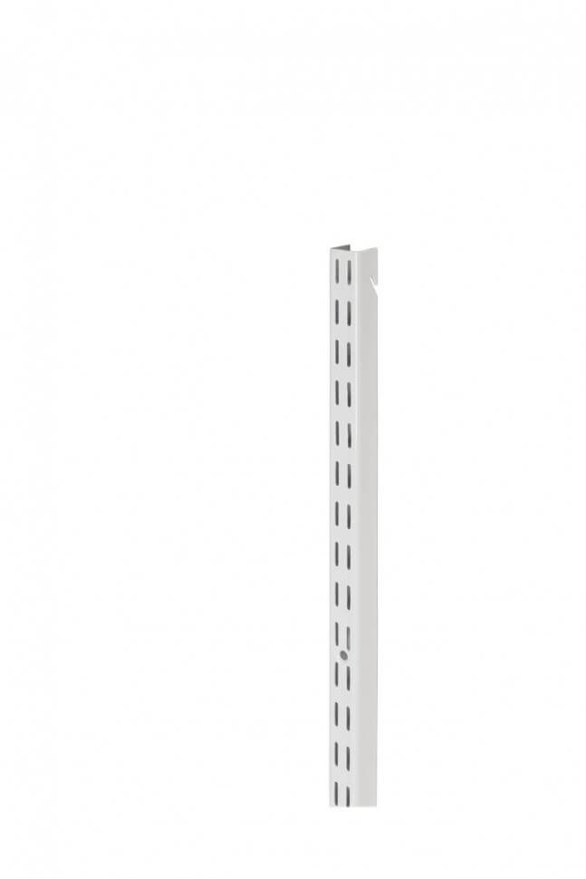 Металлическая стойка служит для монтажа кронштейнов и присоединяется к несущему рельсу, так же, если будет нужно, ее можно прикрепить к стене. На ней расположены пазы в два ряда, необходимых для крепления кронштейнов под различные полки и перекладины. Благодаря стойкам определяется высота конструкции, а так же количество элементов из которых будет состоять система хранения.