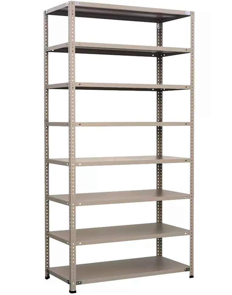 Полки МС Титан изготовлены из высокопрочной стали, покрыта полимерным порошковым покрытием светло серого цвета RAL 7035 типа шагрень